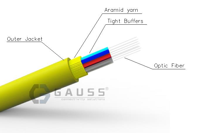 The tight buffer fiber wrapped with a layer of aramid yarn as strength member ,then completed with a layer of PVC or LSZH material as out jacket.